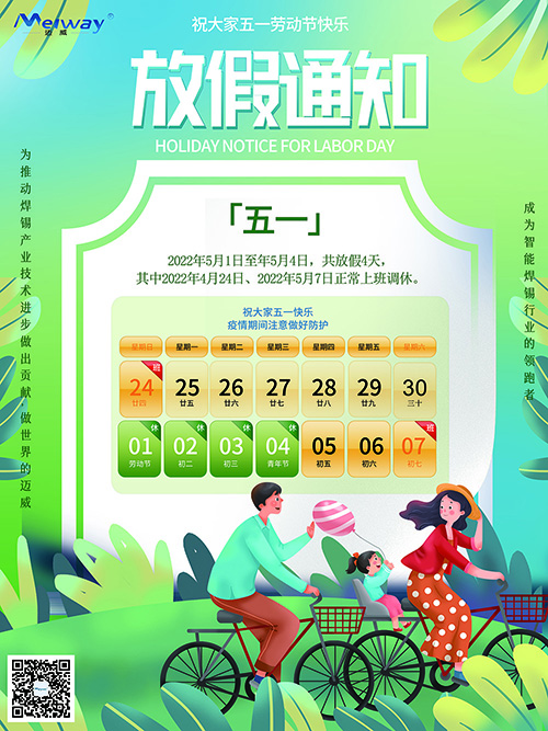 根據《國務院辦公廳關于2022年部分節假日安排的通知》,并結合公司實際情況,現將“五一”期間的放假安排,通知如下: