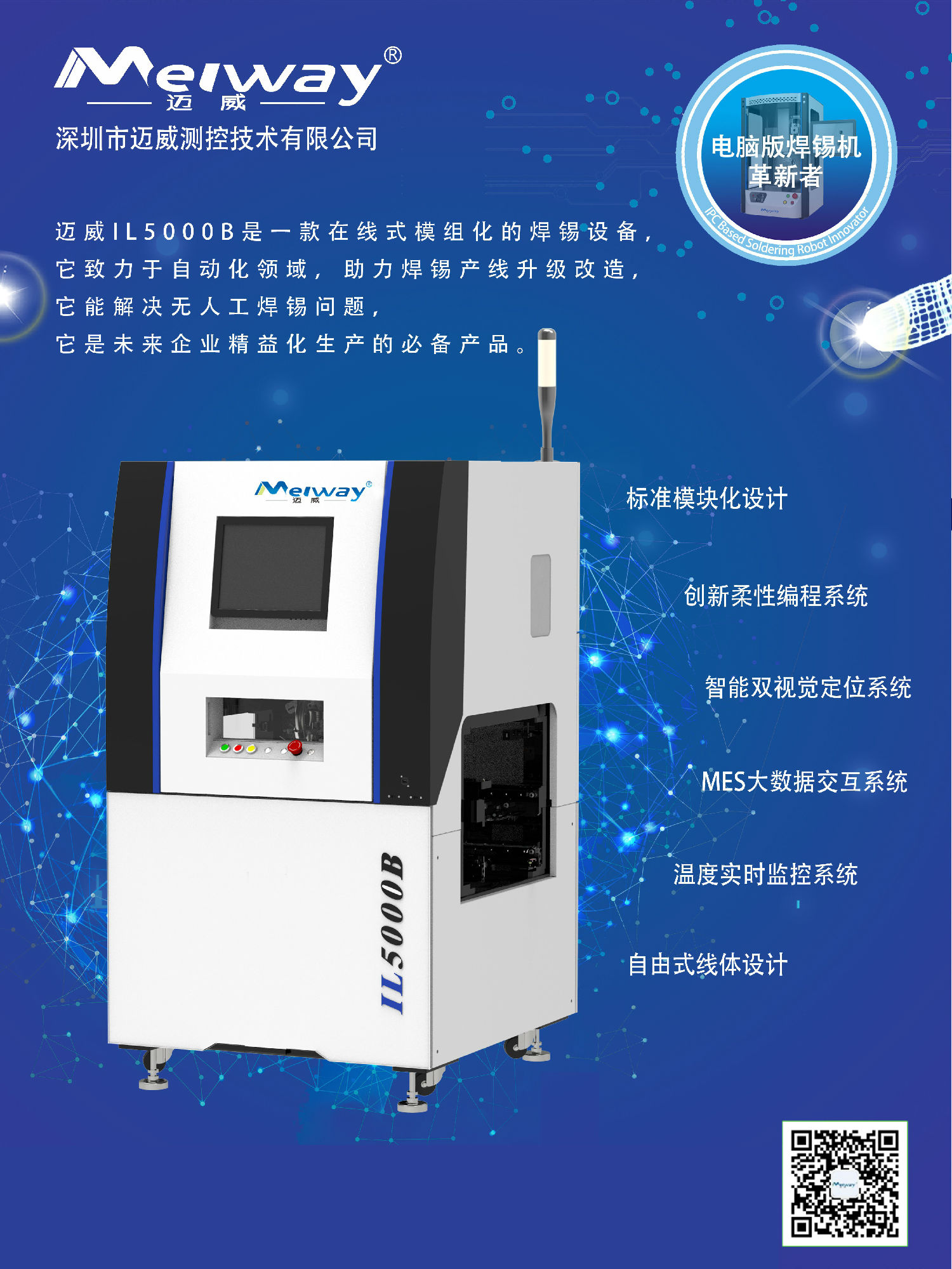 在本次展會(huì)中,邁威將展出IL5000B智能模組式在線(xiàn)焊錫機(jī),它是邁威持續(xù)創(chuàng)新的成果,它將提高廣大電子產(chǎn)品制造商的核心競(jìng)爭(zhēng)力。
